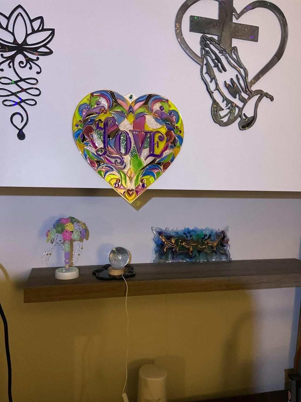 This 3D printed part sits flat against a panel allowing the artist to stick it in place using a thin coat of resin.   The artist can then pour resin into the different areas creating a unique artwork for a wall or window.  It may also be used with release film to make a stand alone piece although we recommend you use the heart shaped panel for ease of use and best result.