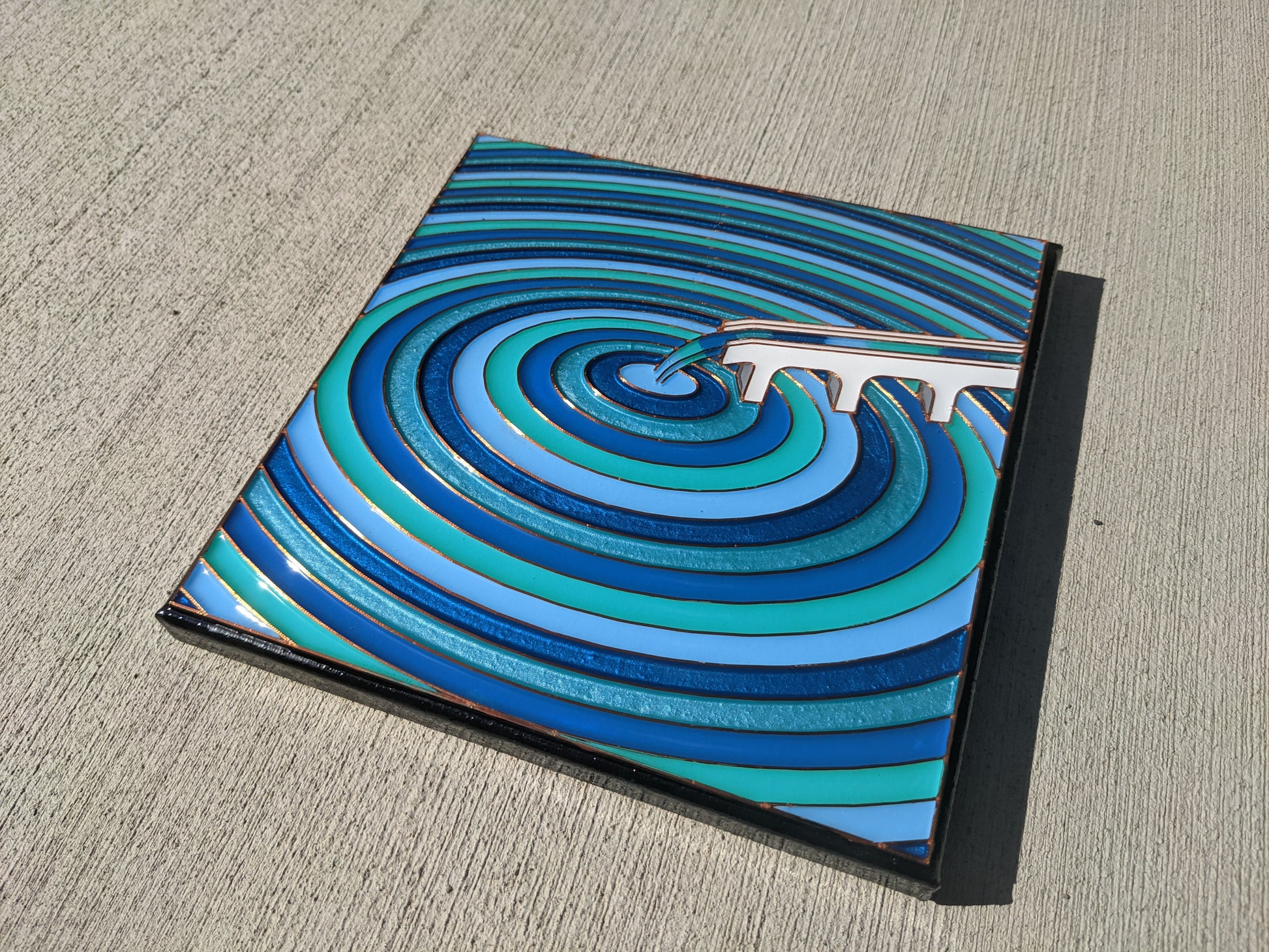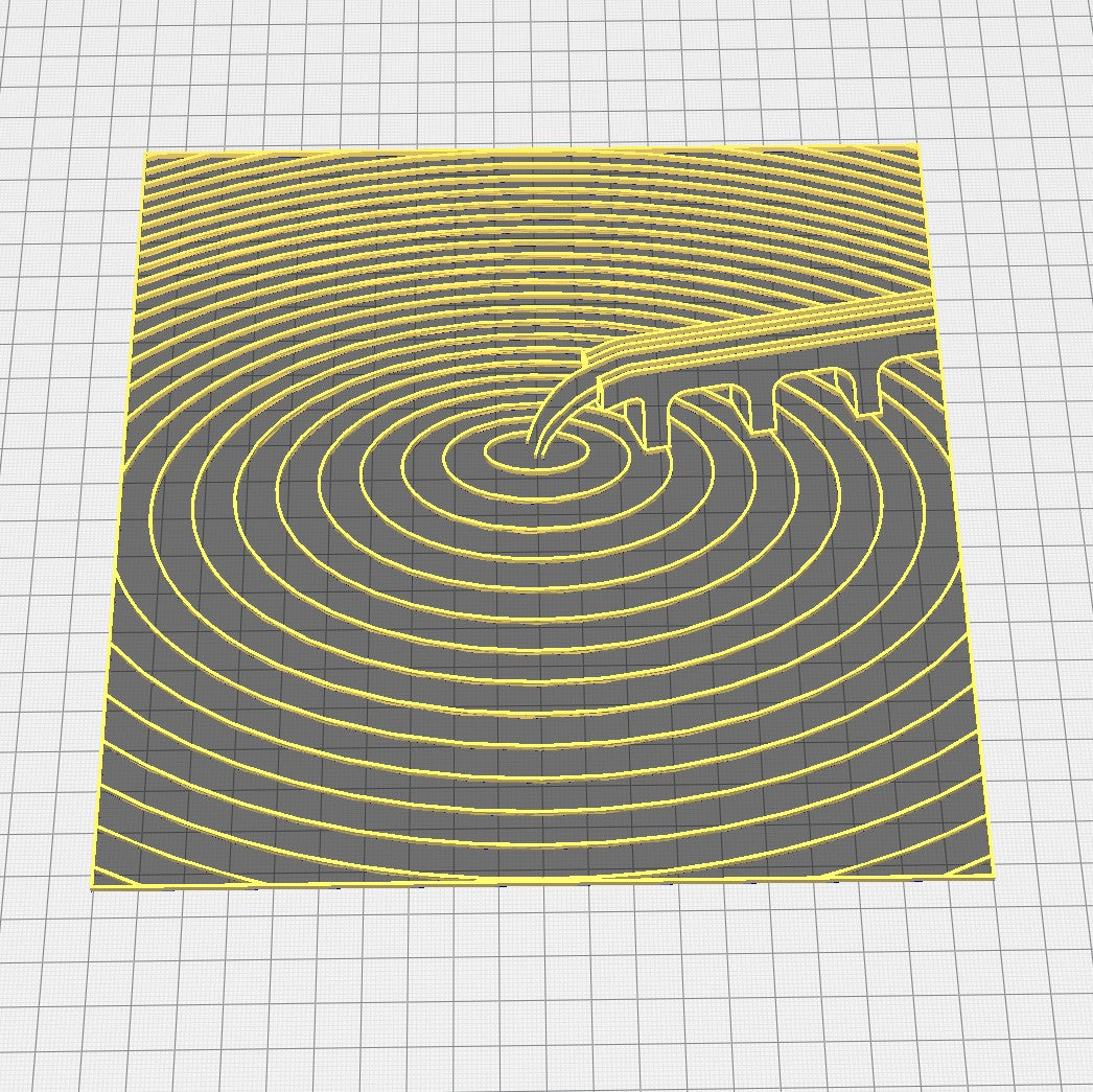 This 3D printed part sits flat against the panel or canvas allowing the artist to stick it in place using  a thin coat of resin.   The artist can then pour paint or resin into the different areas creating a cool personalized quirky pattern of a aquaduct pouring paint onto the canvas in rings.  So much fun.