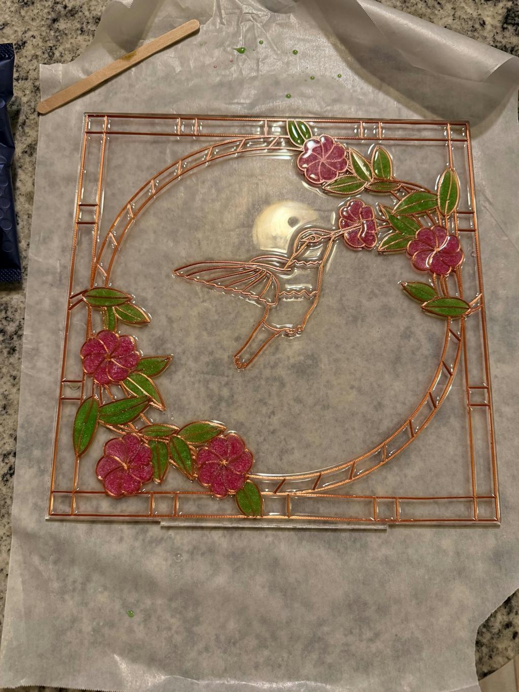 One time use Hummingbird pattern for use in either resin art or acrylic pour painting.
