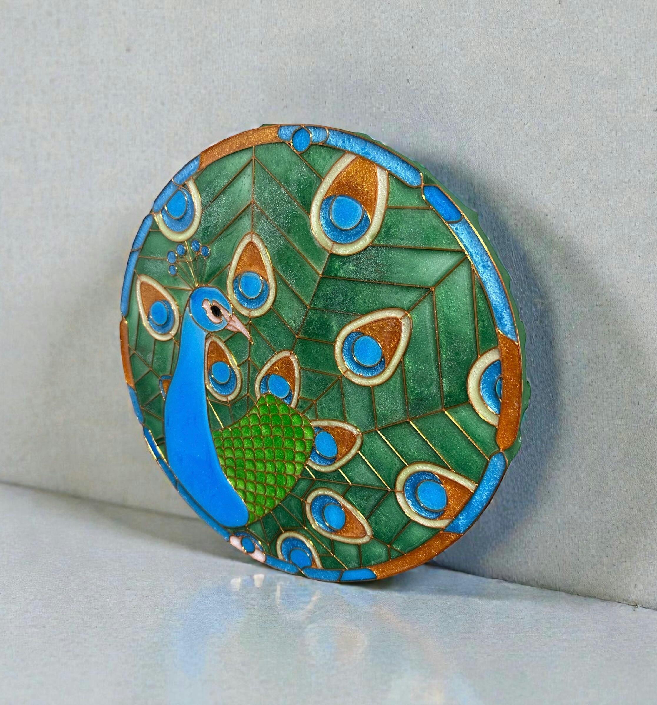This 3D printed part sits flat against a panel allowing the artist to stick it in place using a thin coat of resin. The artist can then pour colored resin into the different areas creating beautiful personalized artwork of a Peacock. The Peacock can be colored as a realistic scene or a more stylised abstract interpretation depending on the artists personal preference.