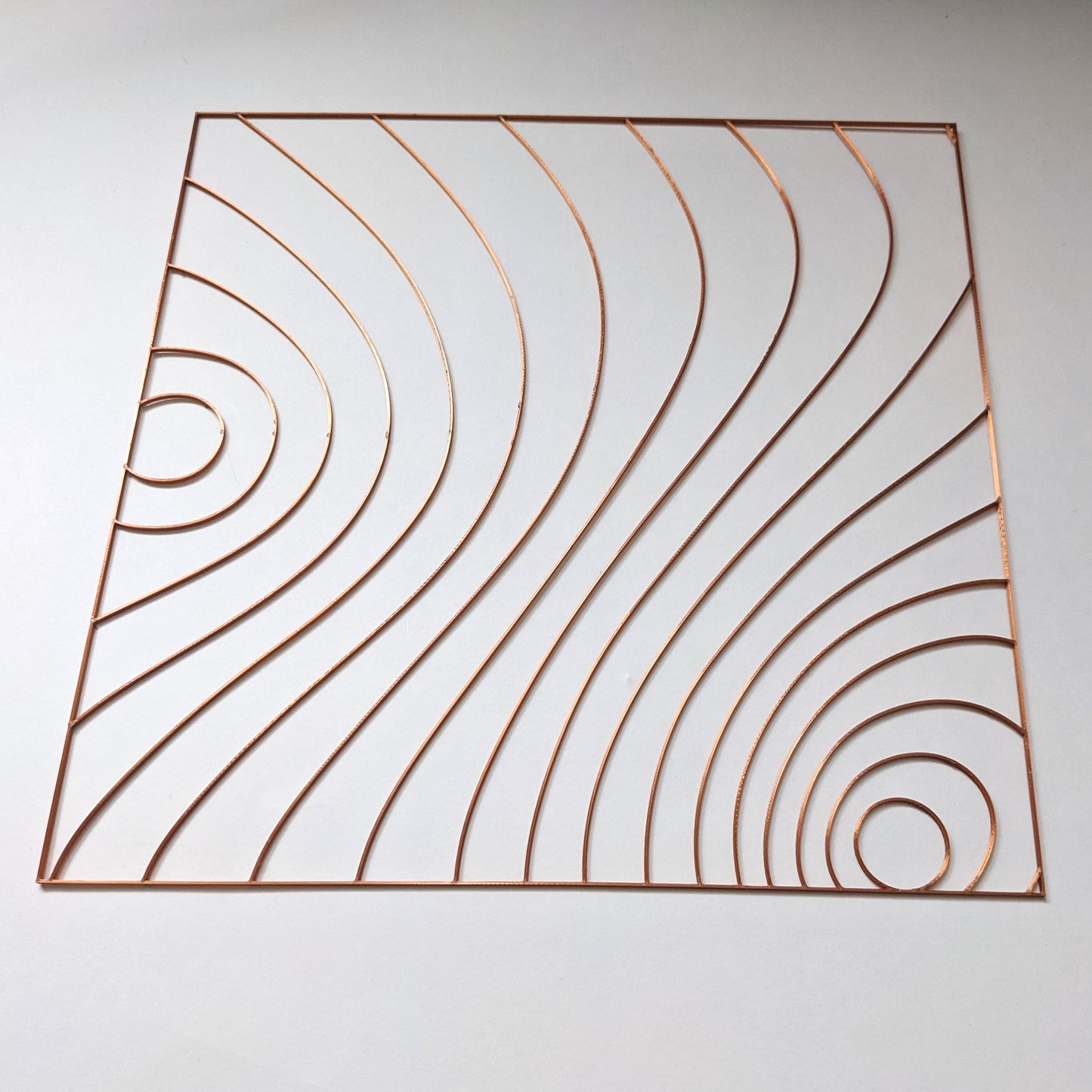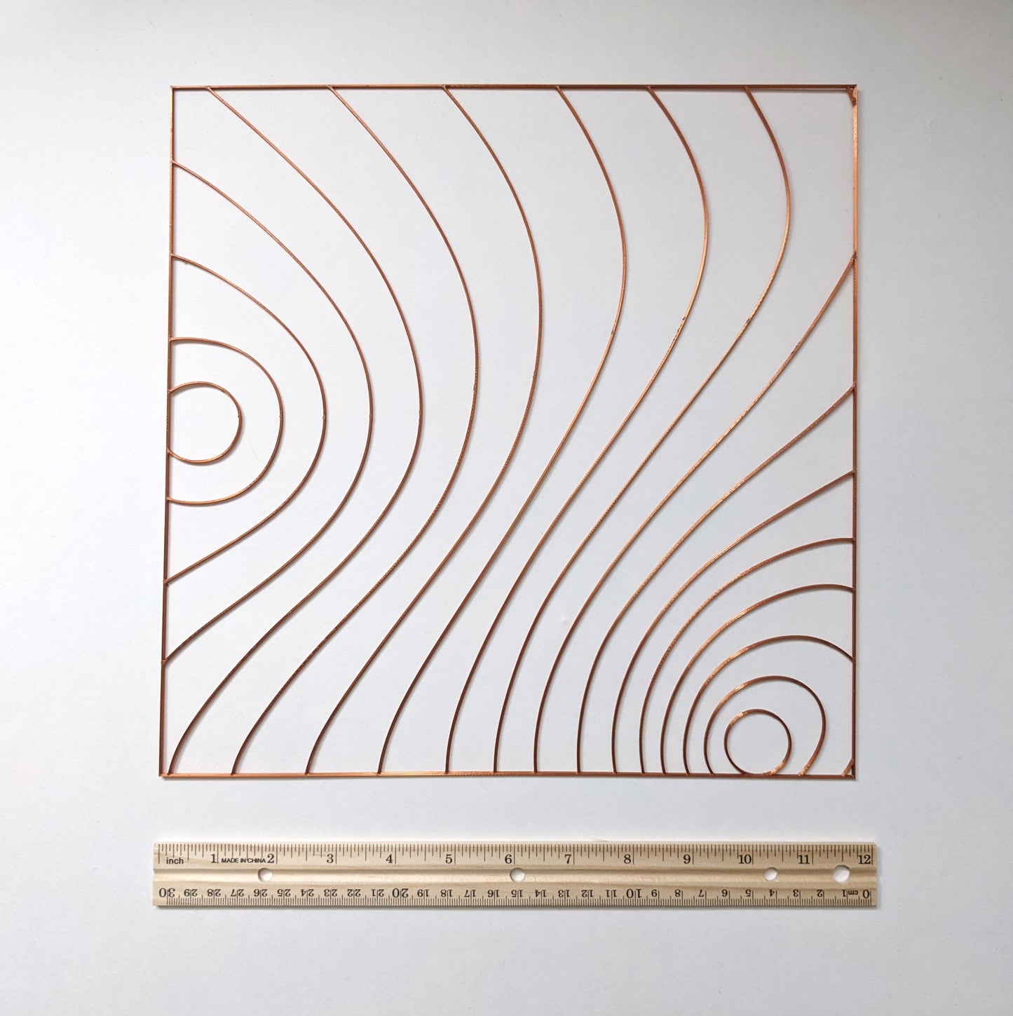 The pattern is 12 inches square and 1/16" thick giving plenty of depth for your pour. Please note sizes are approximate as there is some shrinkage when the part is removed from the printer. It is produced from metallic copper PLA.